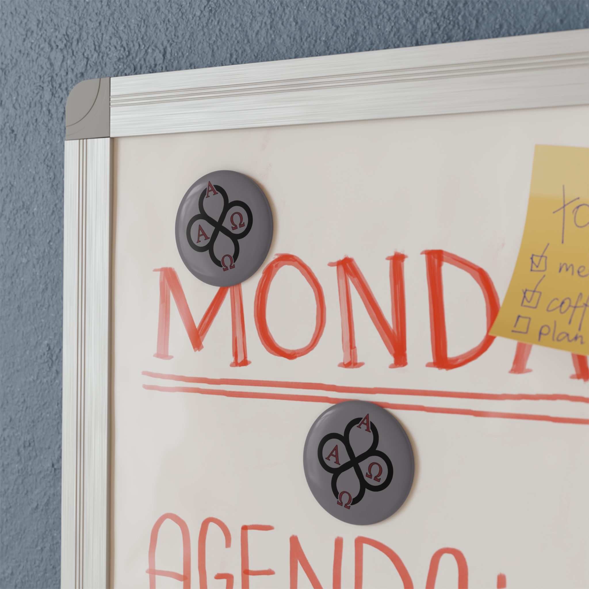 A compact, beautifully finished round magnet that brings a touch of thoughtful symbolism to everyday spaces. The glossy mylar cover locks in vibrant inks so the deep blacks and wine-red accents stay crisp over time. Lightweight and slim, it snaps firmly to fridges, file cabinets, or any magnetic surface — a quiet emblem on display during study sessions, morning routines, or while pinning up notes and photos. The durable metal shell and flat magnetic back make it practical for daily use, while the clean circular silhouette keeps attention on the design’s meaningful details.