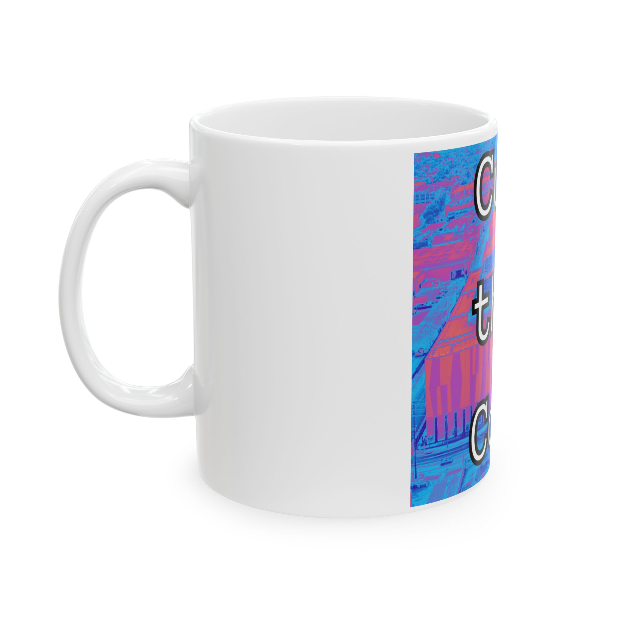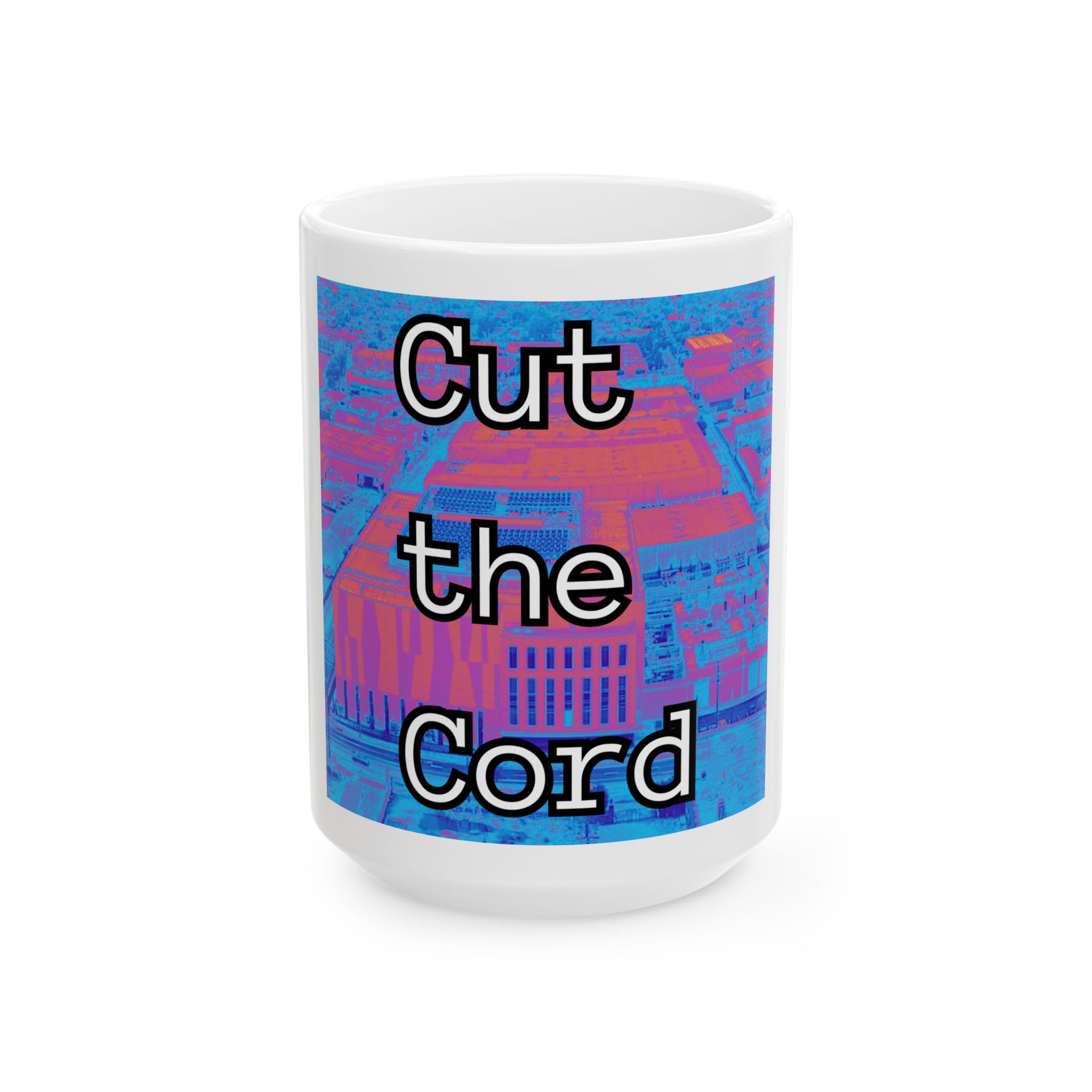 A glossy ceramic mug that speaks like a morning manifesto. Bold neon-blue and magenta tones wrap around the cup, framing the statement “Cut the Cord” in thick, outlined type that reads like a wink to anyone reclaiming time from screens and subscriptions. It’s light enough for daily use, weighty enough to feel solid in your hands, and bright enough that the message becomes a small ritual each morning. Use it while planning a weekend unplug, at your cluttered desk when you need a reminder to step outside, or as a conversation starter in a shared kitchen. The finish catches light and makes the colors pop, turning an ordinary coffee break into a deliberate, slightly rebellious moment.