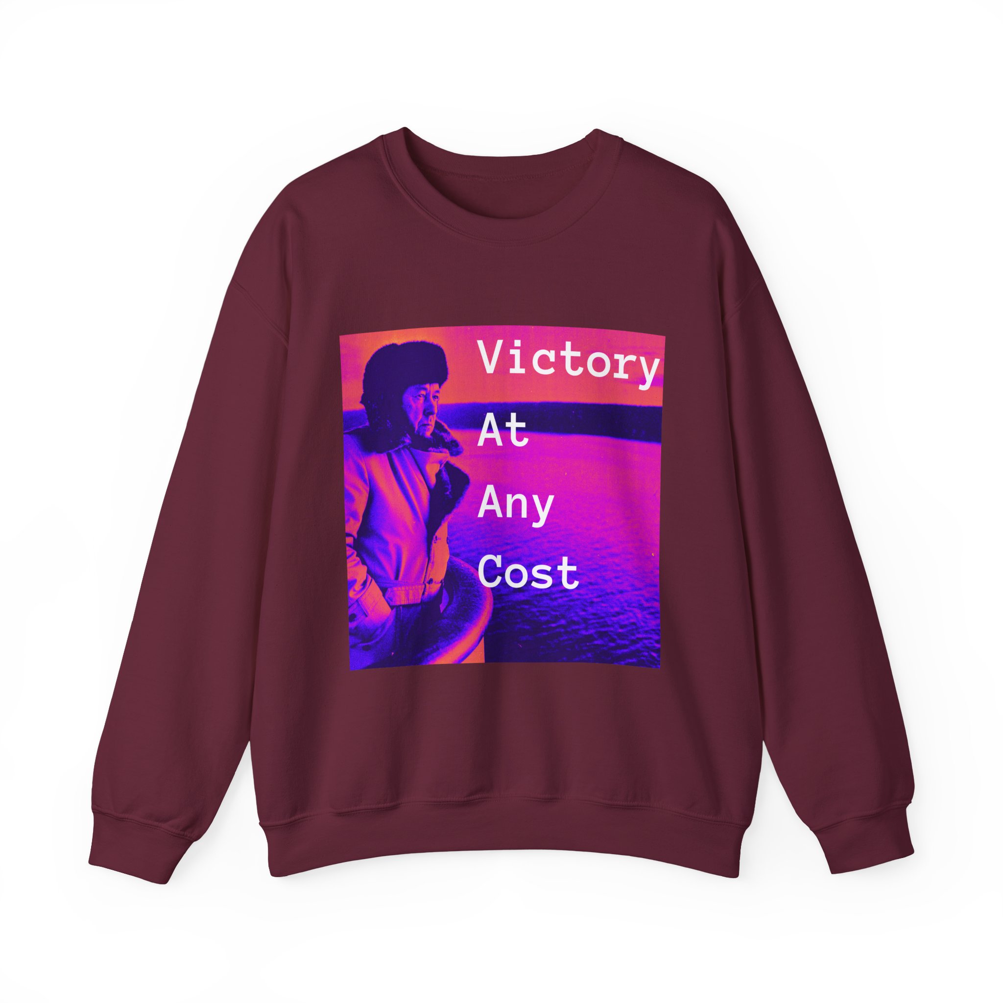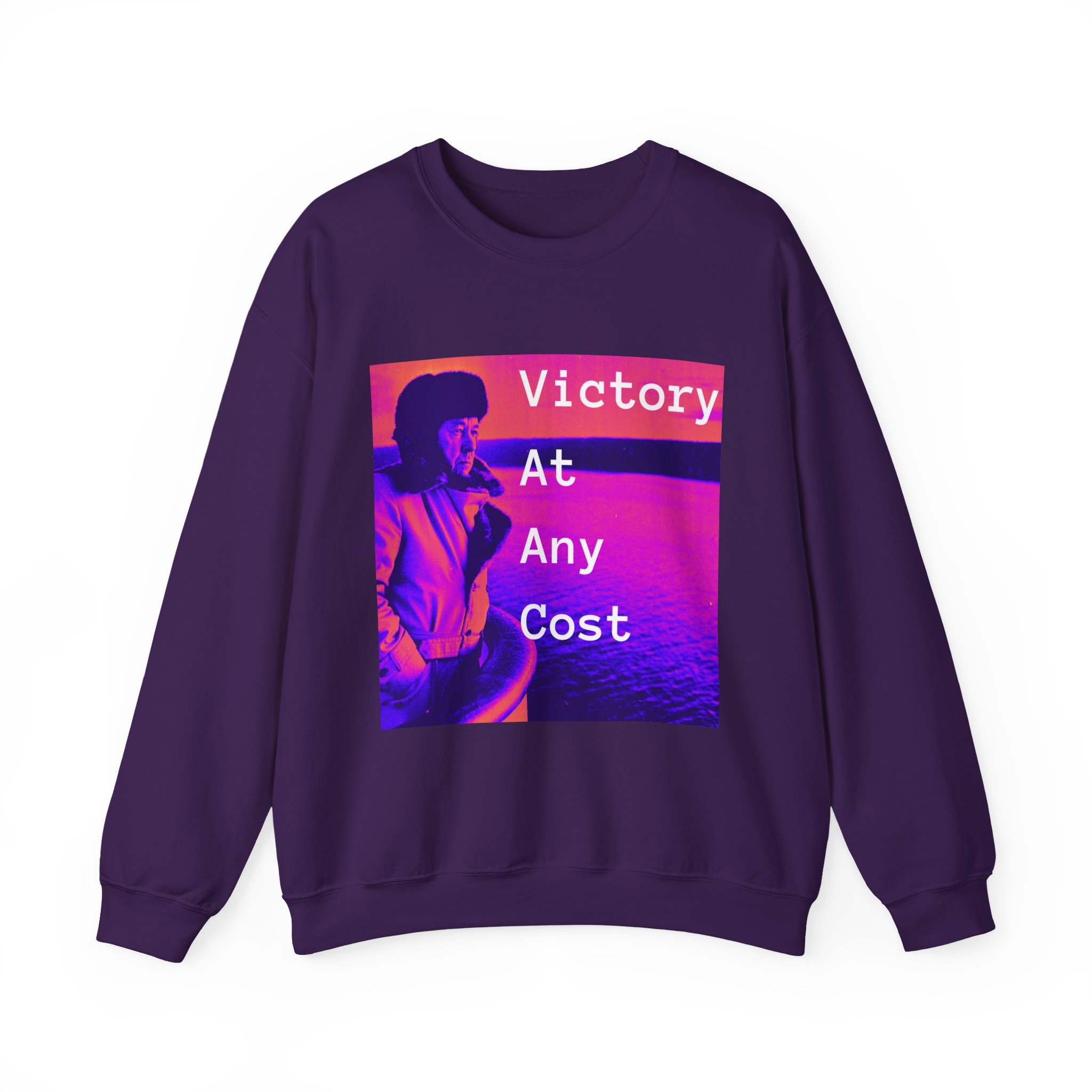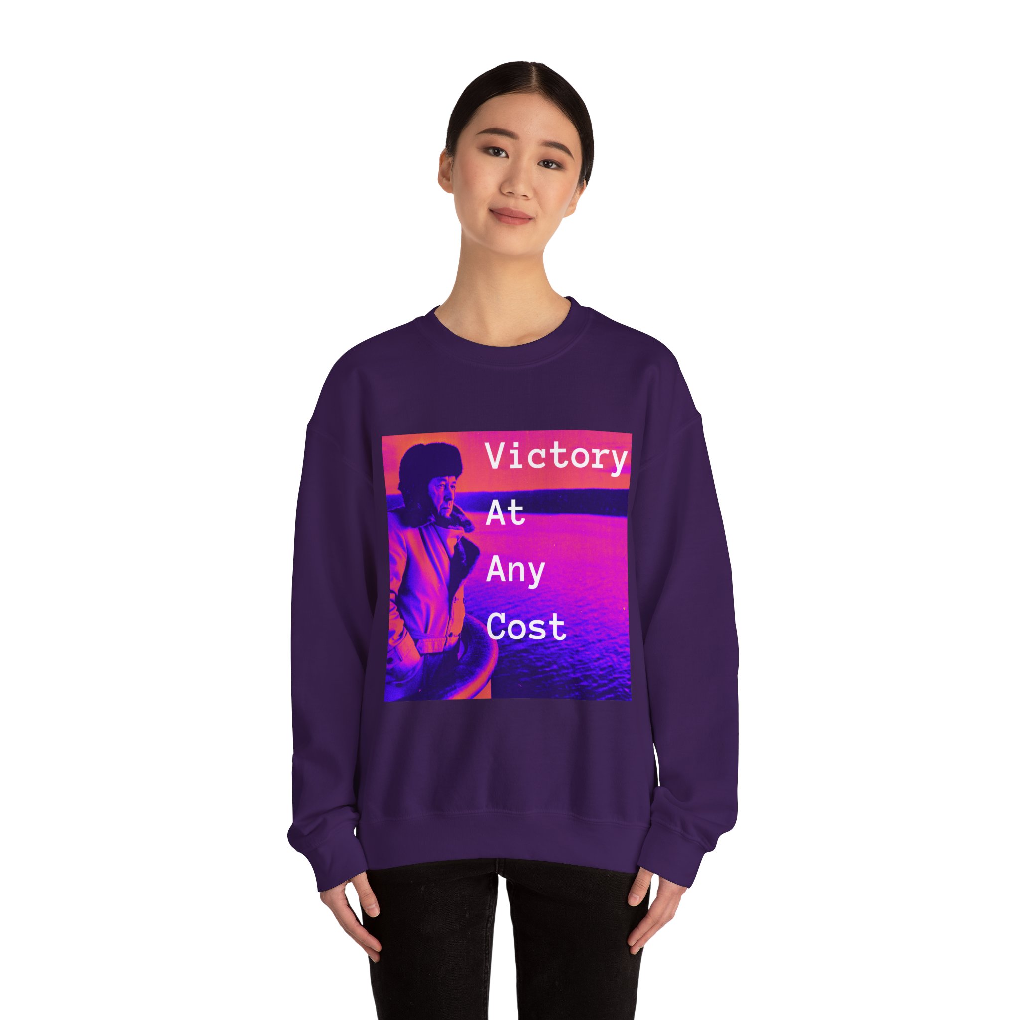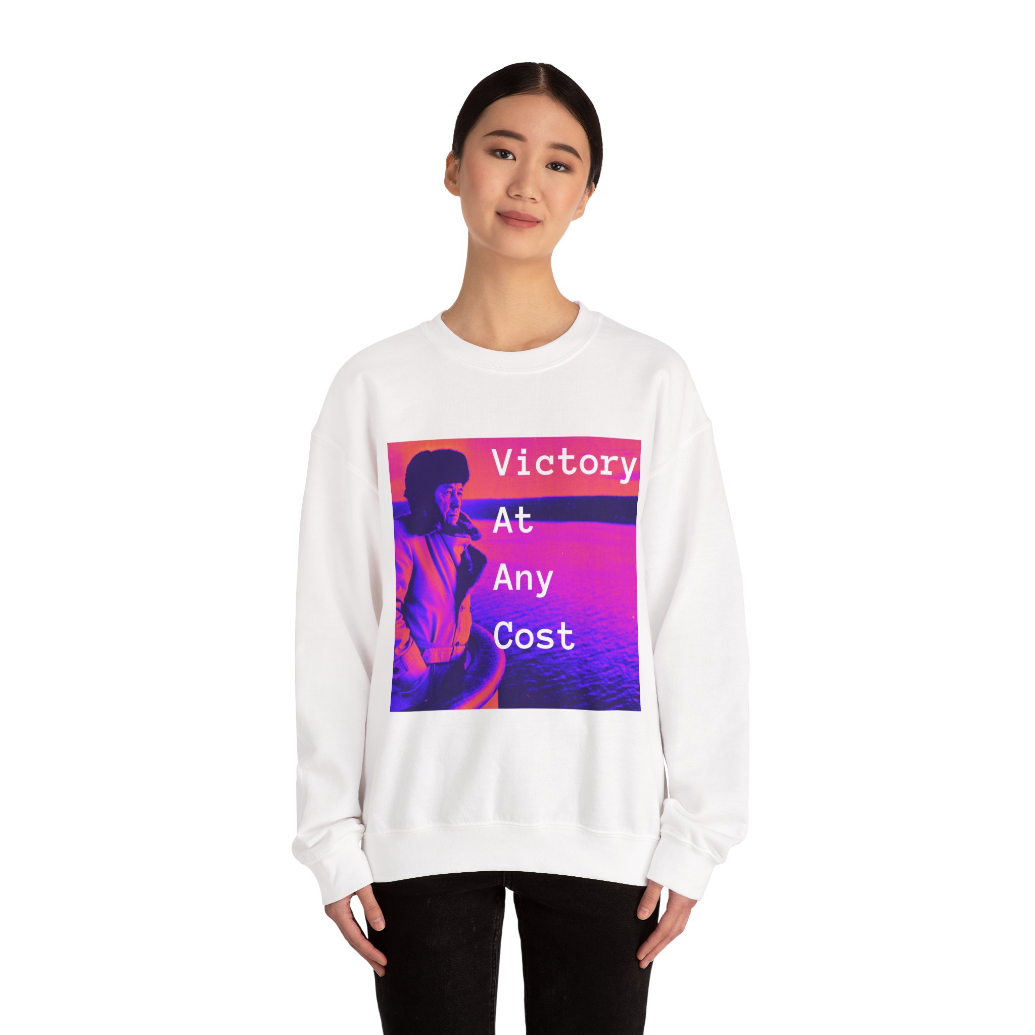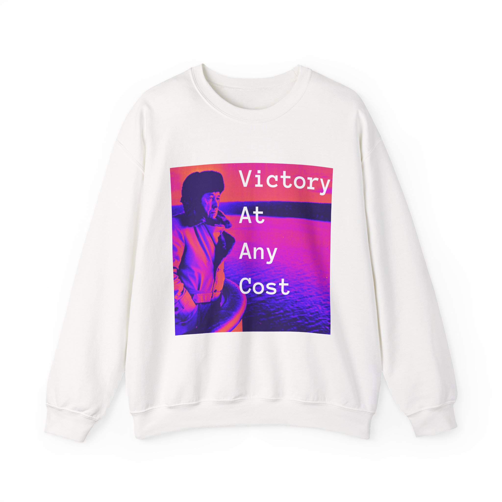 This crewneck sweatshirt channels bold, late-night energy with a vivid, retro-inspired graphic that reads “Victory At Any Cost.” The image’s saturated magenta and deep navy tones pop against the soft white fabric, creating an unapologetic statement piece for someone who moves through life with determination and a little edge. The classic crew cut and medium-heavy 50/50 cotton-poly blend keep the feel comfortably familiar while the tubular knit body and ribbed collar hold their shape wear after wear. Subtle production details — tear-away neck label, durable double-needle stitching, and options for embroidered placements — elevate the look without losing that lived-in, street-ready attitude. Wear it to rallies, late shows, or nights out when you want your conviction to be louder than words.
