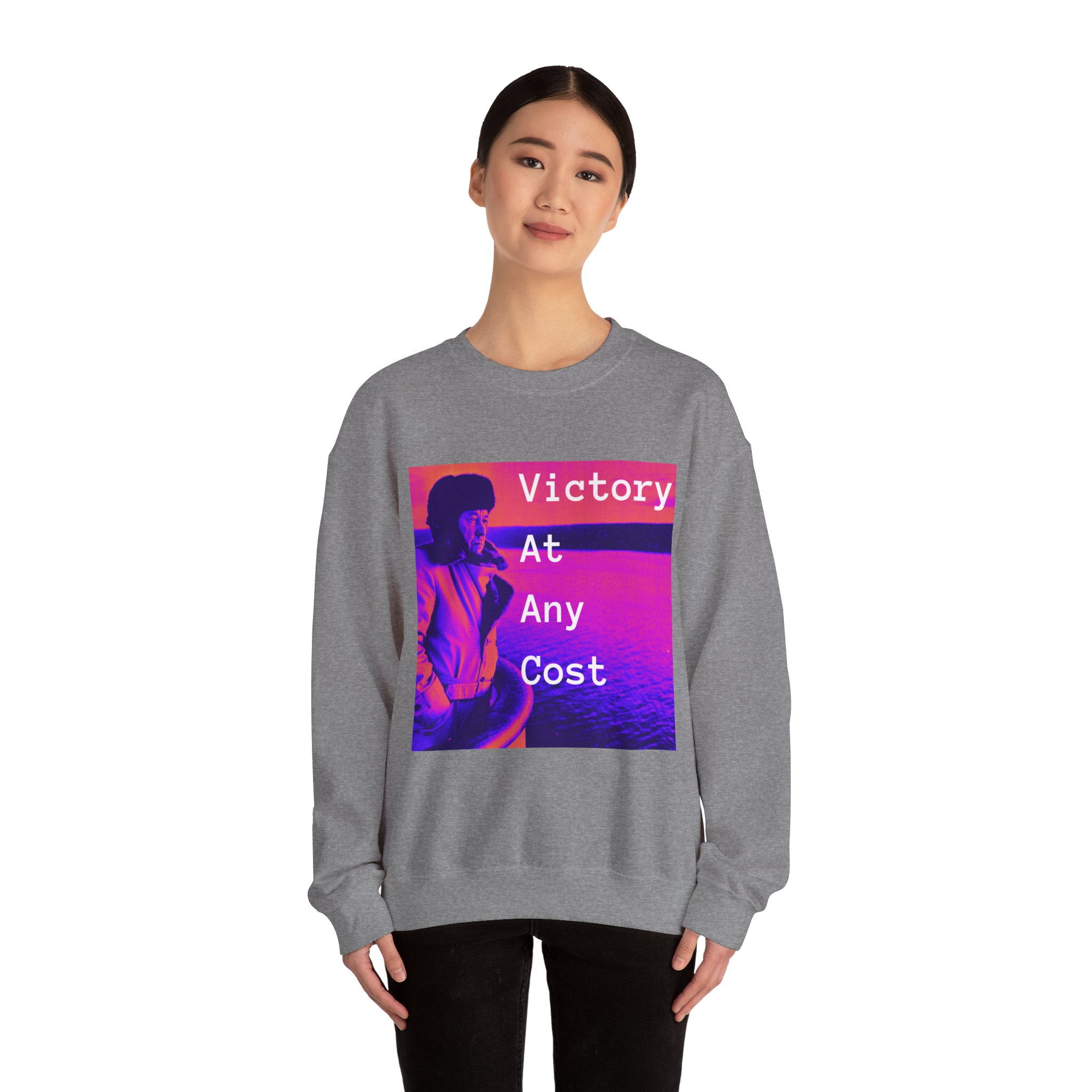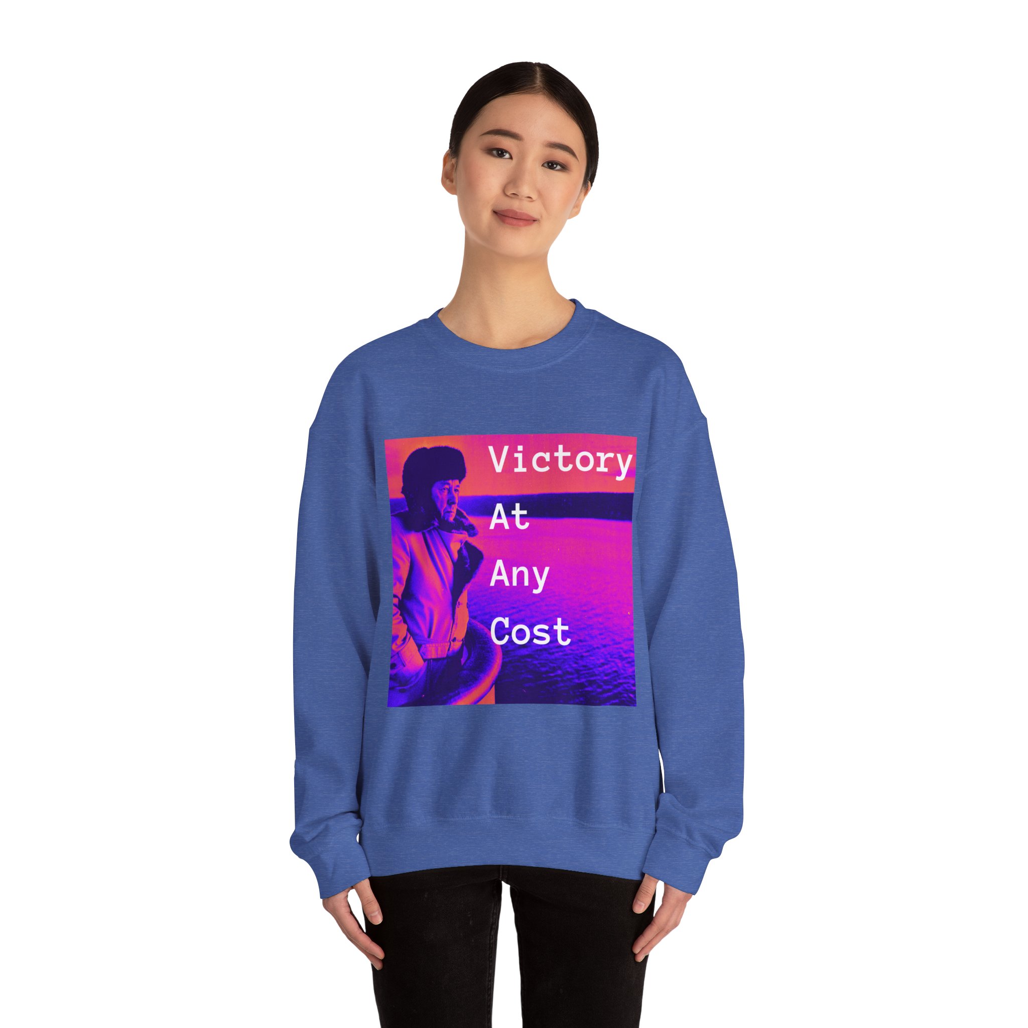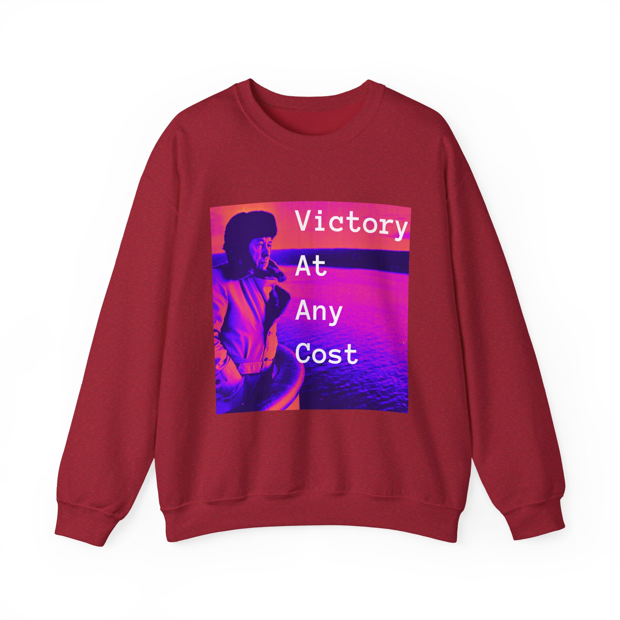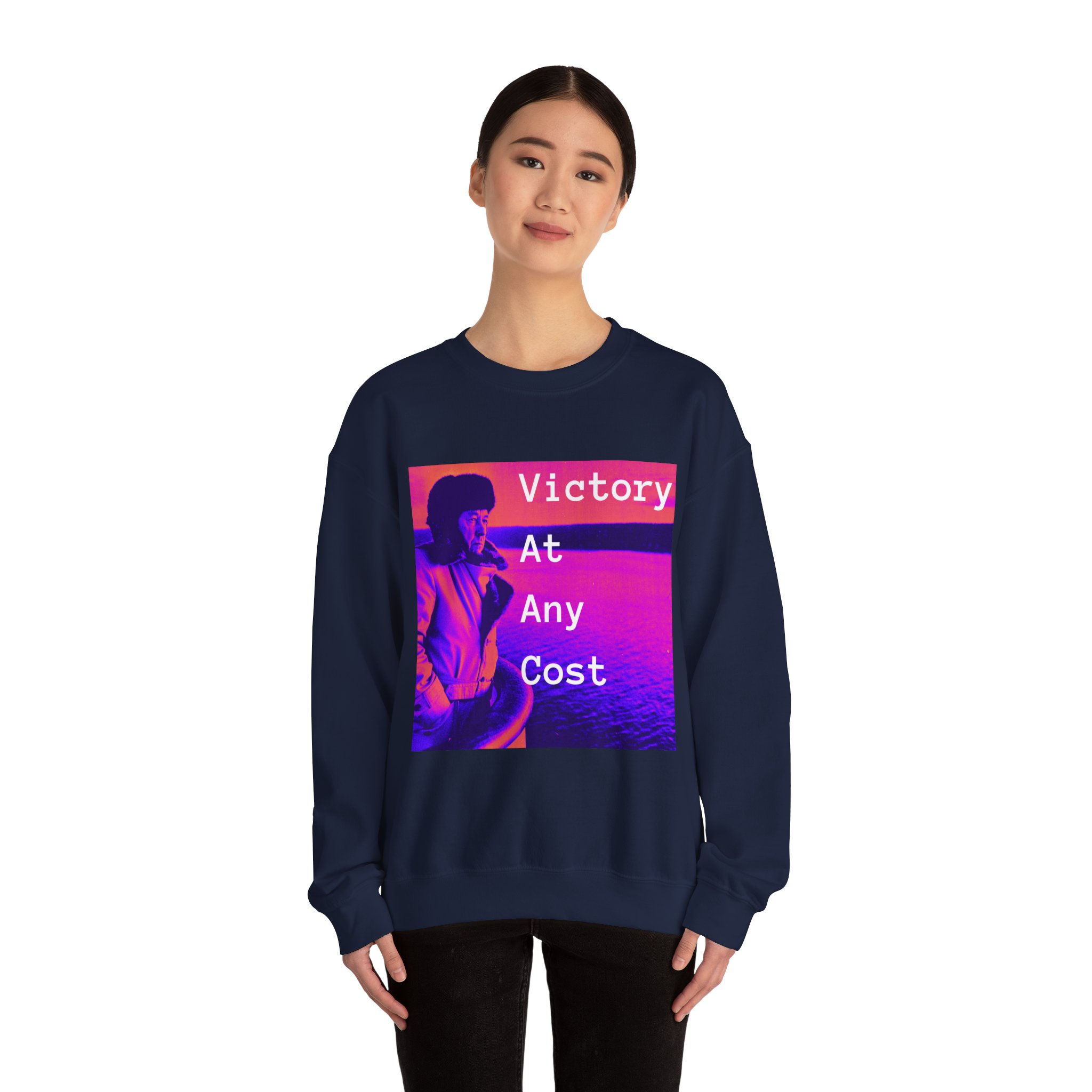 This crewneck sweatshirt channels bold, late-night energy with a vivid, retro-inspired graphic that reads “Victory At Any Cost.” The image’s saturated magenta and deep navy tones pop against the soft white fabric, creating an unapologetic statement piece for someone who moves through life with determination and a little edge. The classic crew cut and medium-heavy 50/50 cotton-poly blend keep the feel comfortably familiar while the tubular knit body and ribbed collar hold their shape wear after wear. Subtle production details — tear-away neck label, durable double-needle stitching, and options for embroidered placements — elevate the look without losing that lived-in, street-ready attitude. Wear it to rallies, late shows, or nights out when you want your conviction to be louder than words.