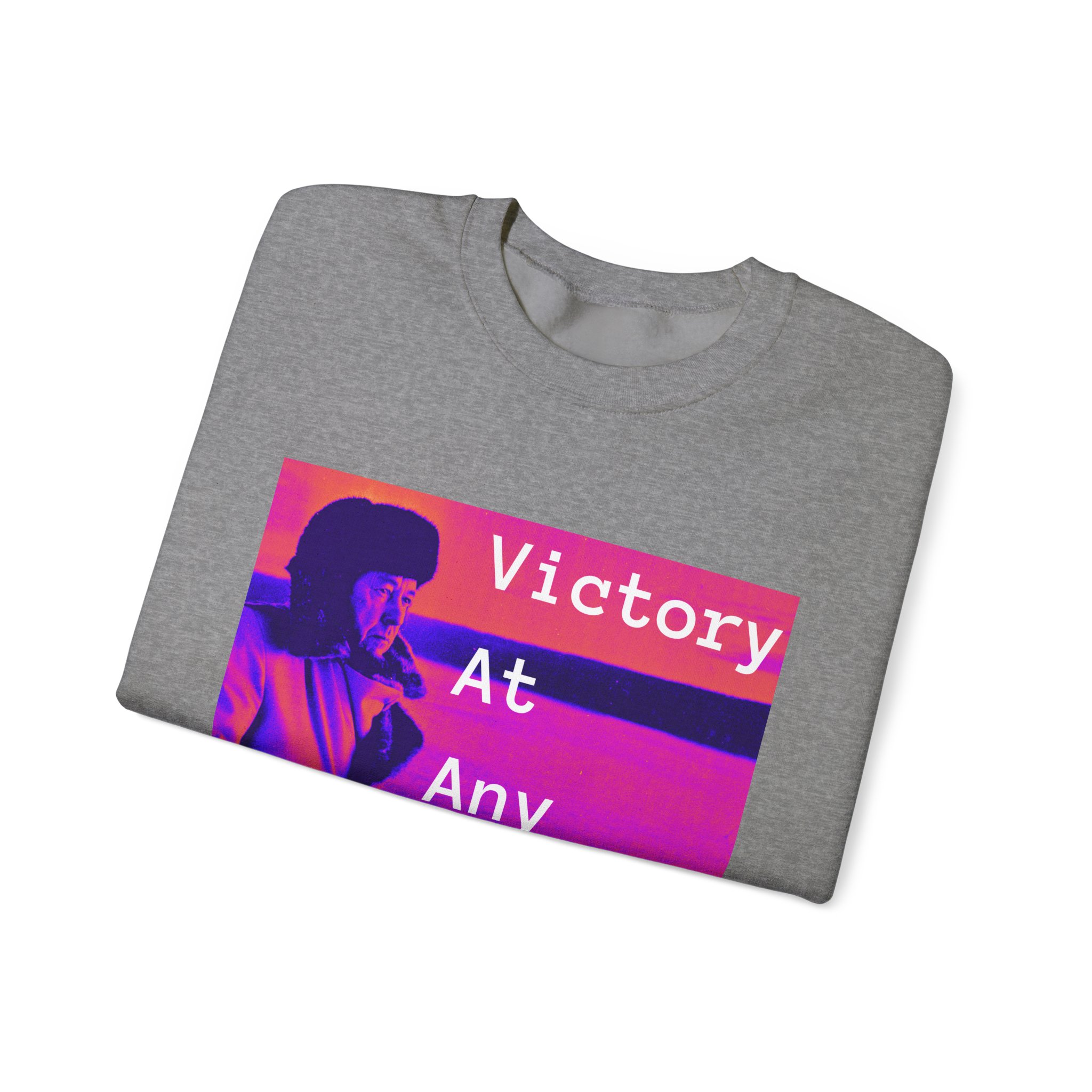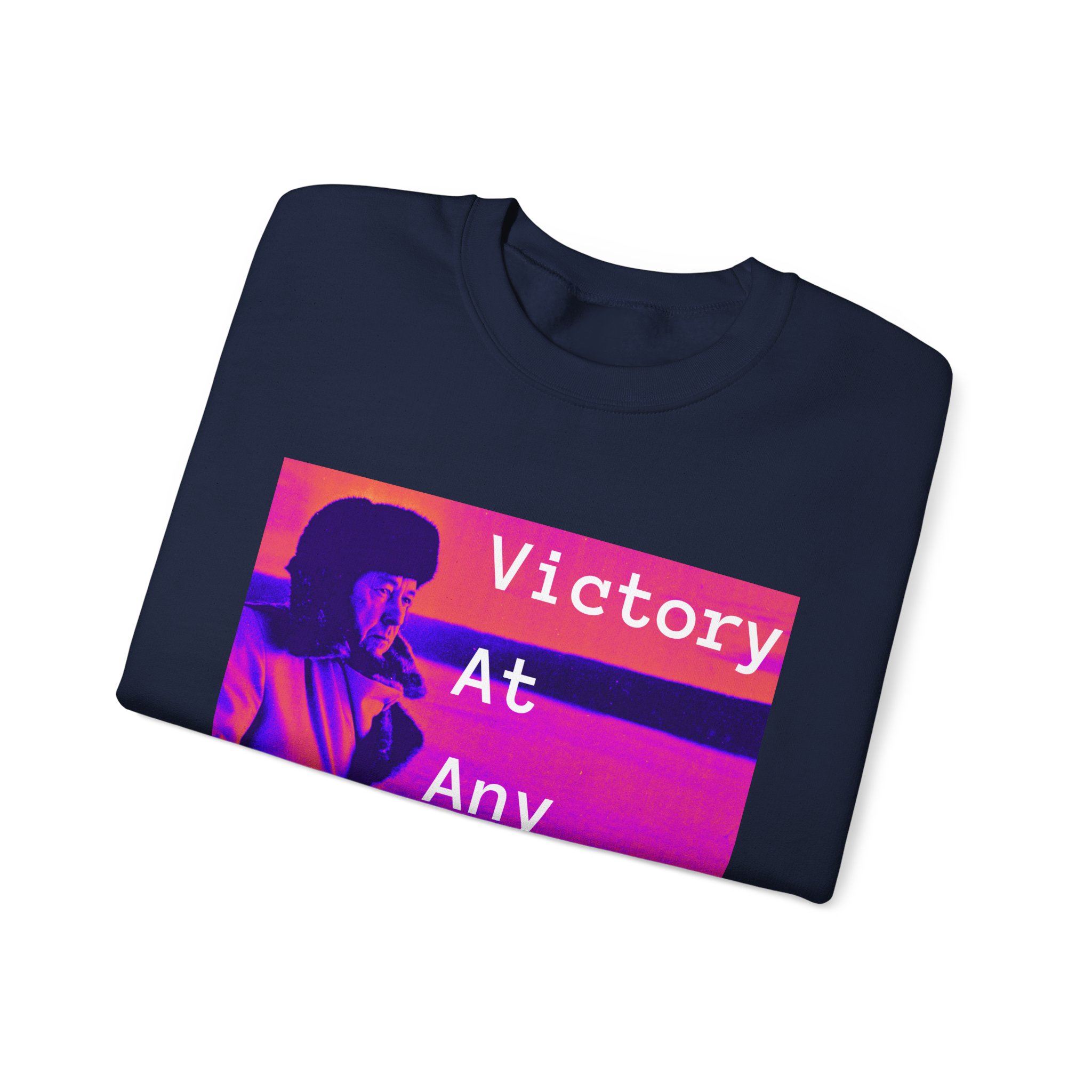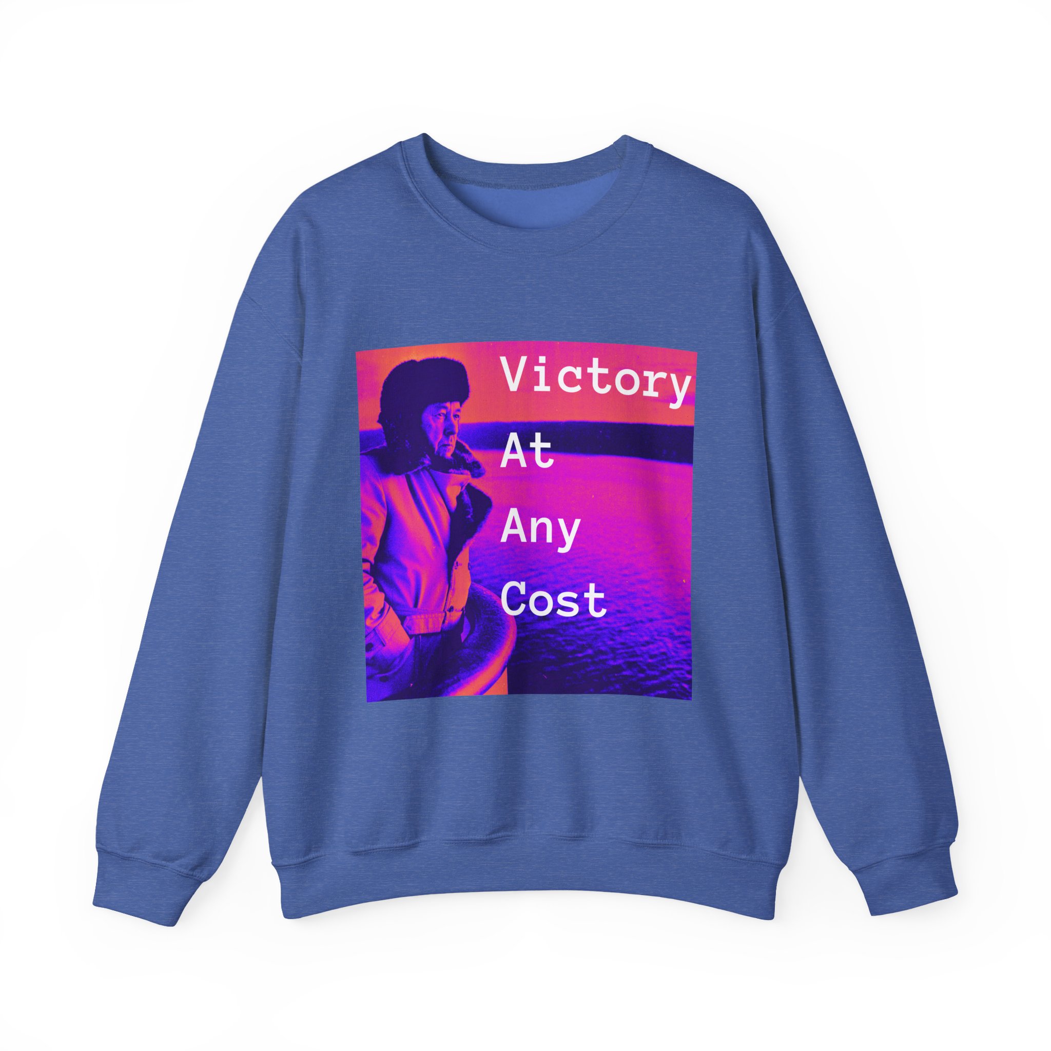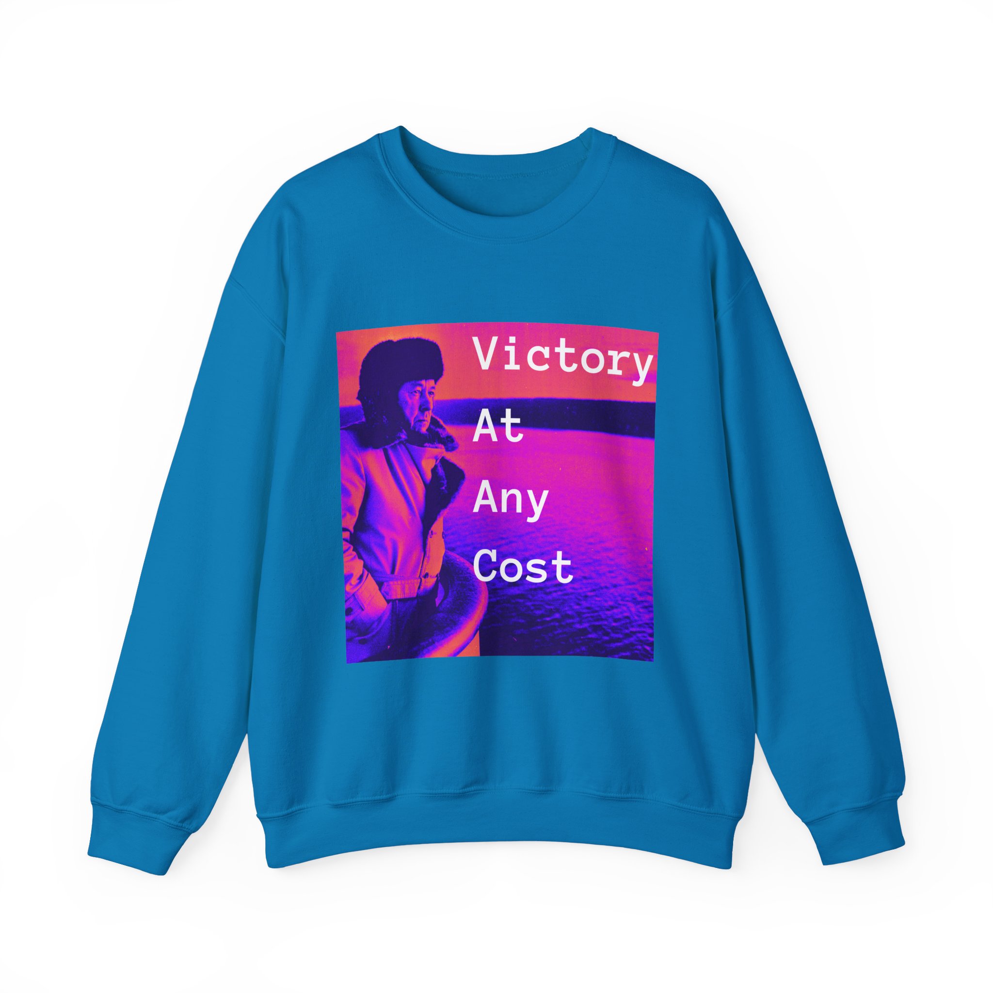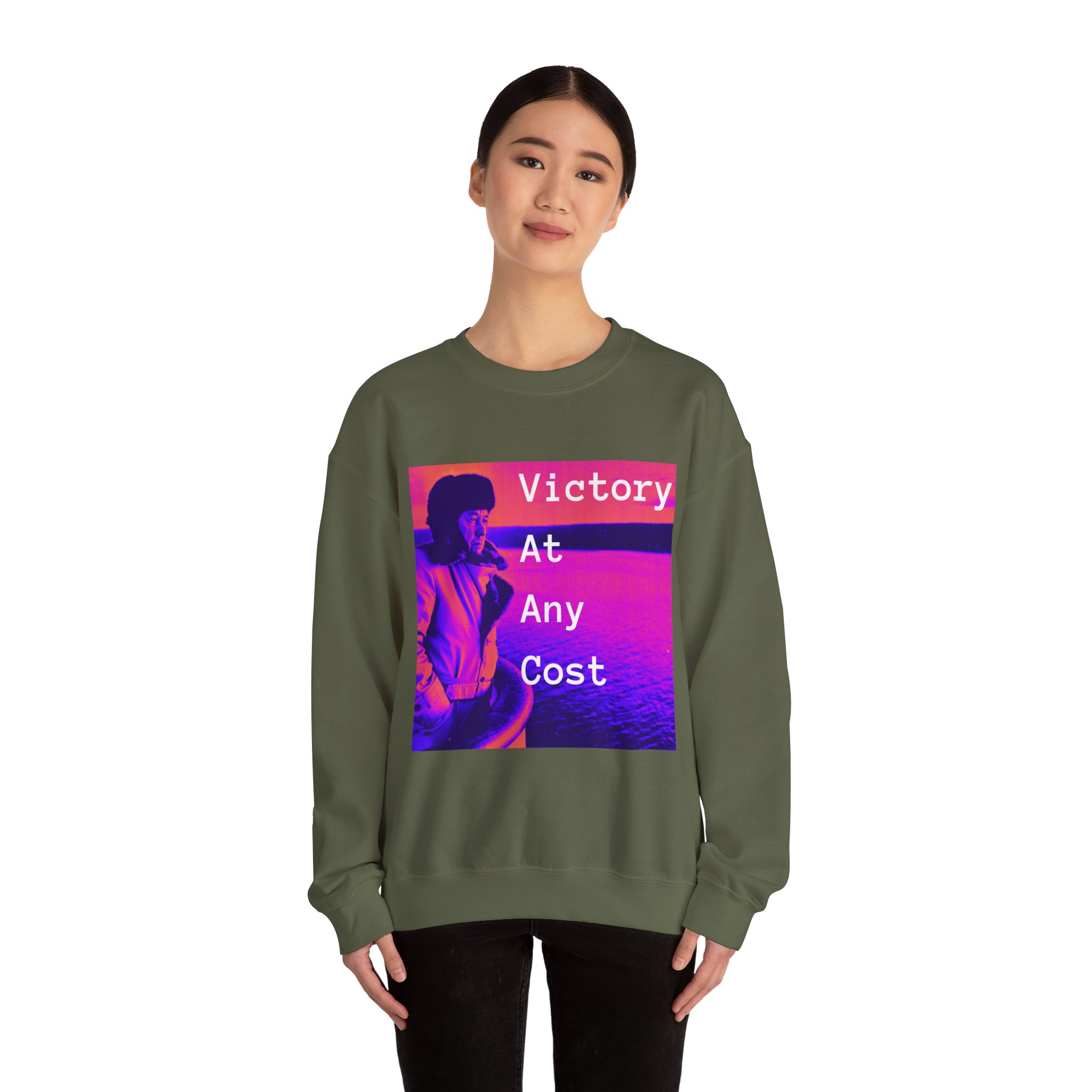 This crewneck sweatshirt channels bold, late-night energy with a vivid, retro-inspired graphic that reads “Victory At Any Cost.” The image’s saturated magenta and deep navy tones pop against the soft white fabric, creating an unapologetic statement piece for someone who moves through life with determination and a little edge. The classic crew cut and medium-heavy 50/50 cotton-poly blend keep the feel comfortably familiar while the tubular knit body and ribbed collar hold their shape wear after wear. Subtle production details — tear-away neck label, durable double-needle stitching, and options for embroidered placements — elevate the look without losing that lived-in, street-ready attitude. Wear it to rallies, late shows, or nights out when you want your conviction to be louder than words.