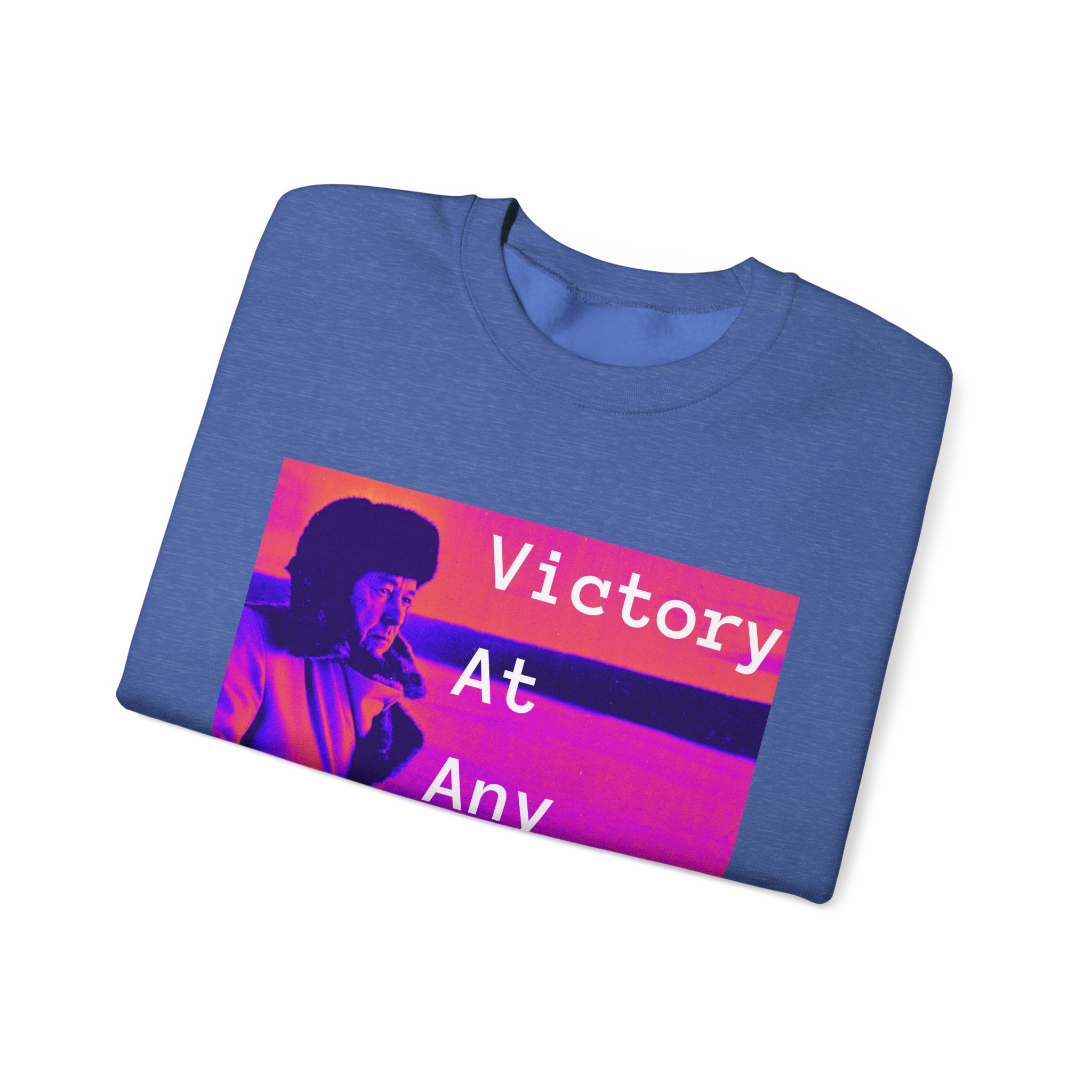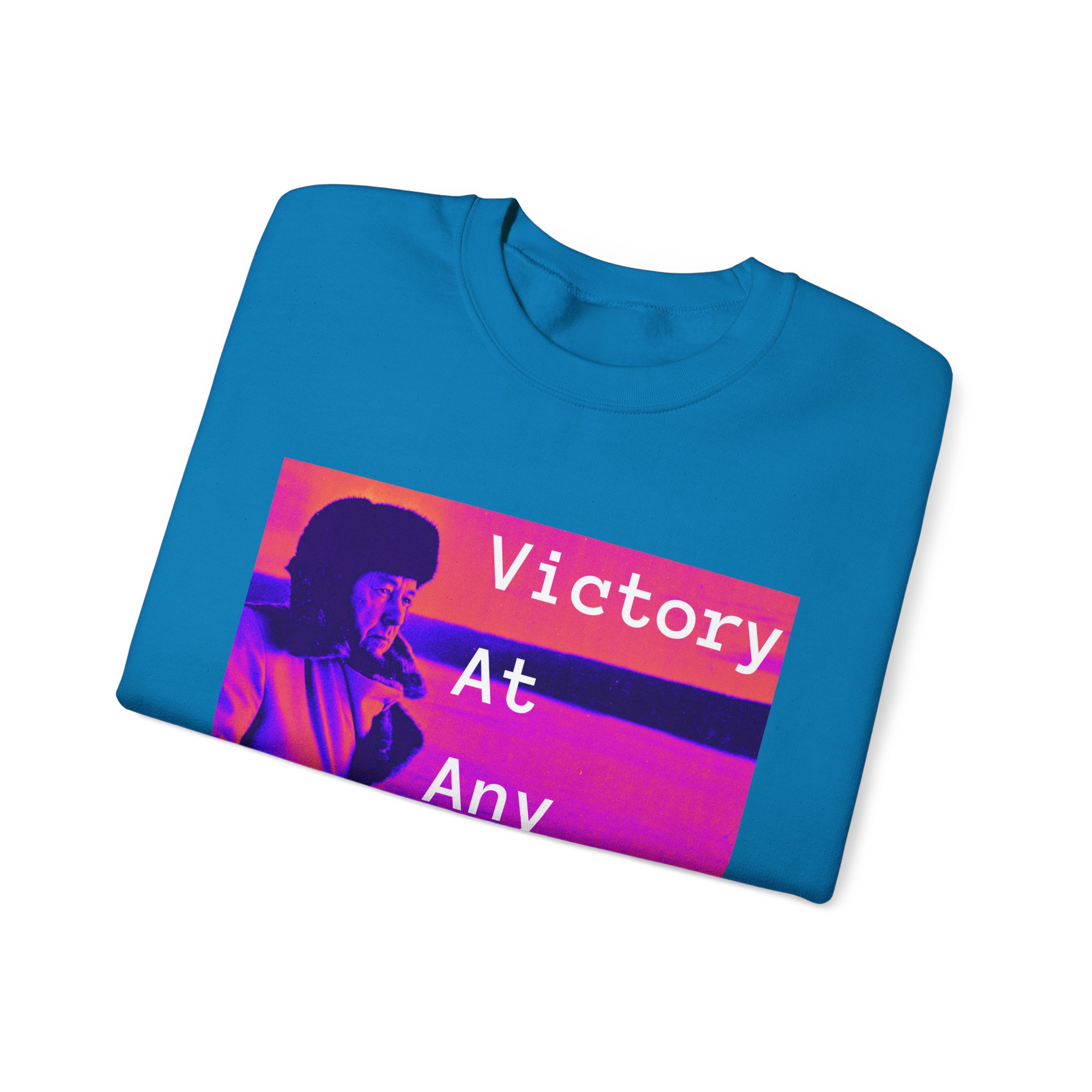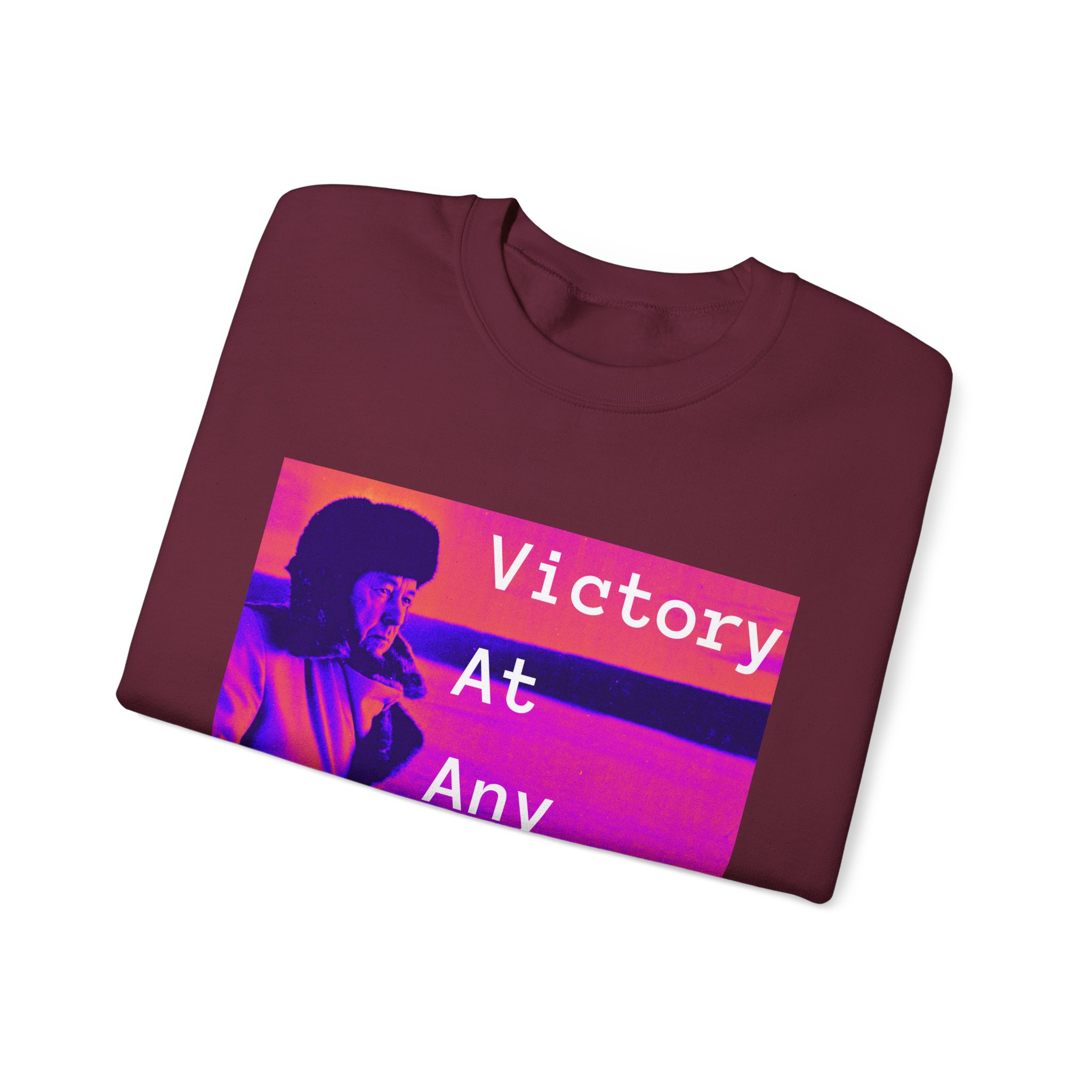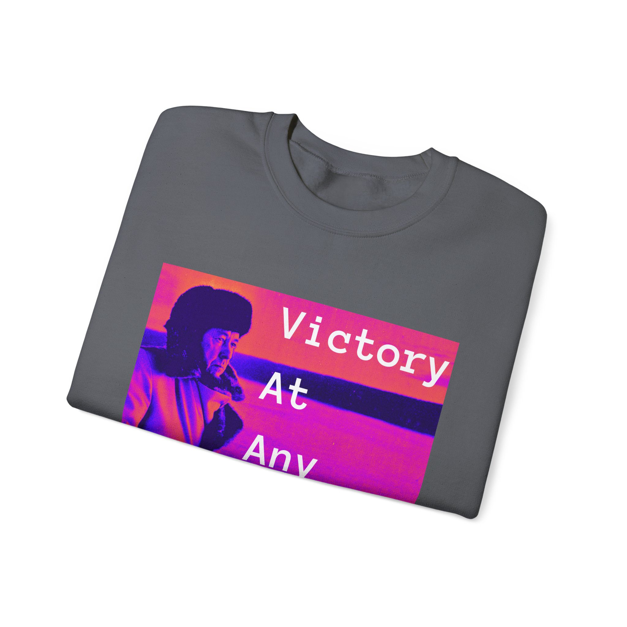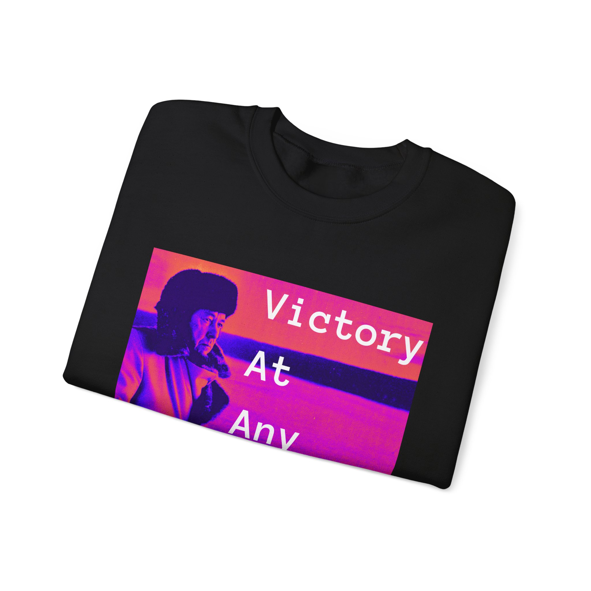 This crewneck sweatshirt channels bold, late-night energy with a vivid, retro-inspired graphic that reads “Victory At Any Cost.” The image’s saturated magenta and deep navy tones pop against the soft white fabric, creating an unapologetic statement piece for someone who moves through life with determination and a little edge. The classic crew cut and medium-heavy 50/50 cotton-poly blend keep the feel comfortably familiar while the tubular knit body and ribbed collar hold their shape wear after wear. Subtle production details — tear-away neck label, durable double-needle stitching, and options for embroidered placements — elevate the look without losing that lived-in, street-ready attitude. Wear it to rallies, late shows, or nights out when you want your conviction to be louder than words.